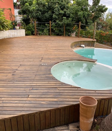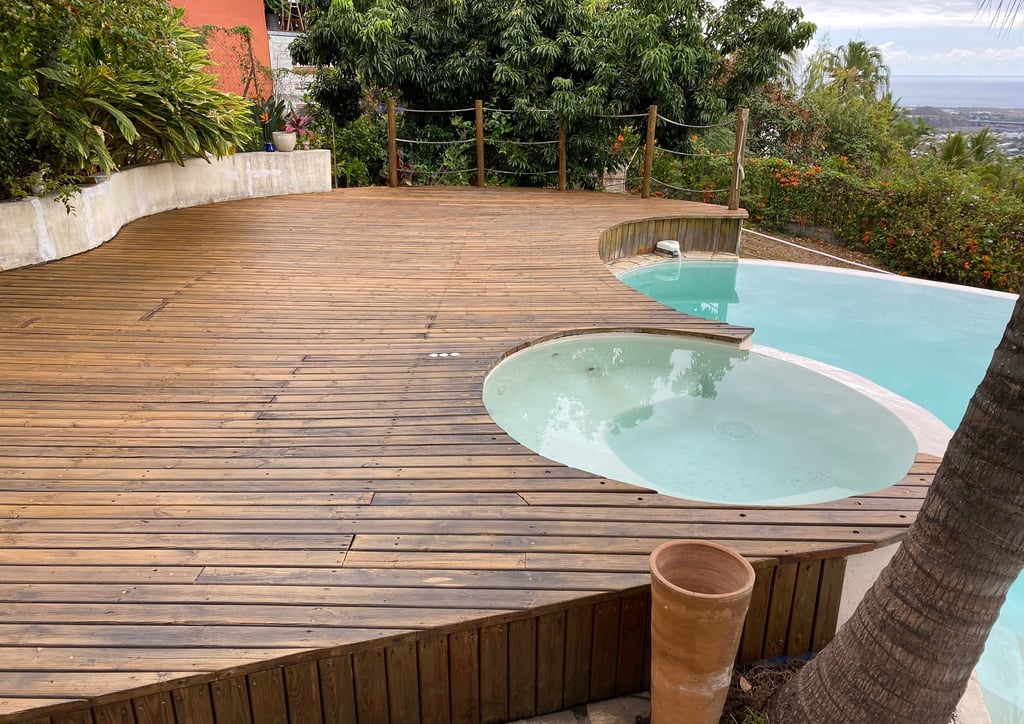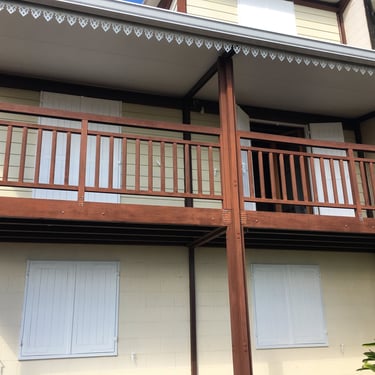 Nous réalisons la rénovation des terrasses en bois, bardages, garde-corps et éléments extérieurs exposés.